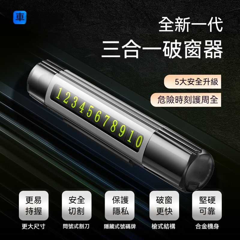 【四合一極速逃生系統】✨將破窗、割繩、照明、號碼牌整合成掌心大小! 鎢鋼撞針、航空合金、用頂尖科技為意外預留生機。