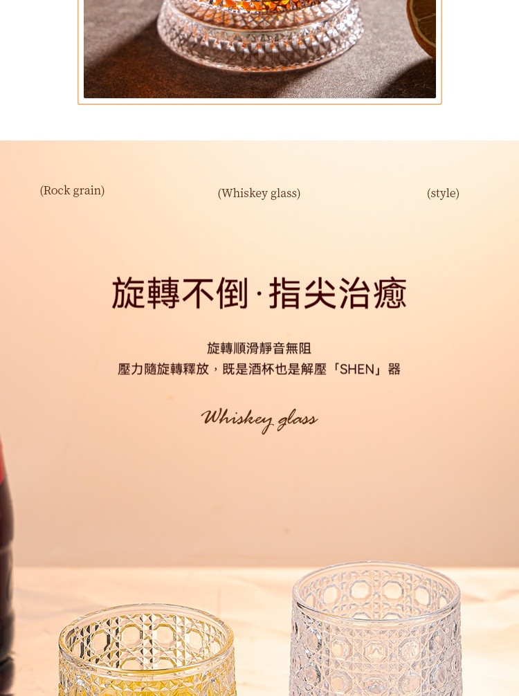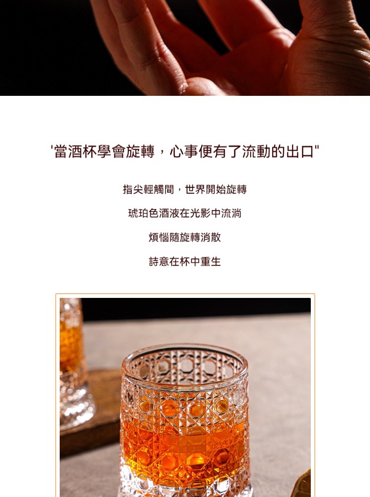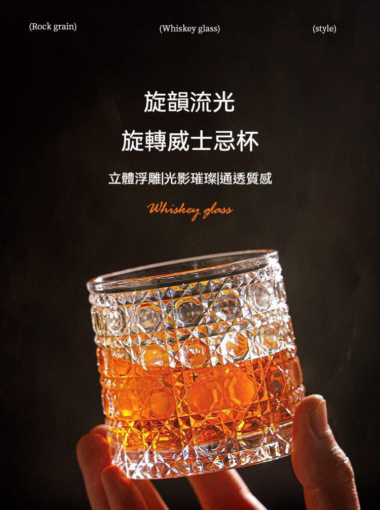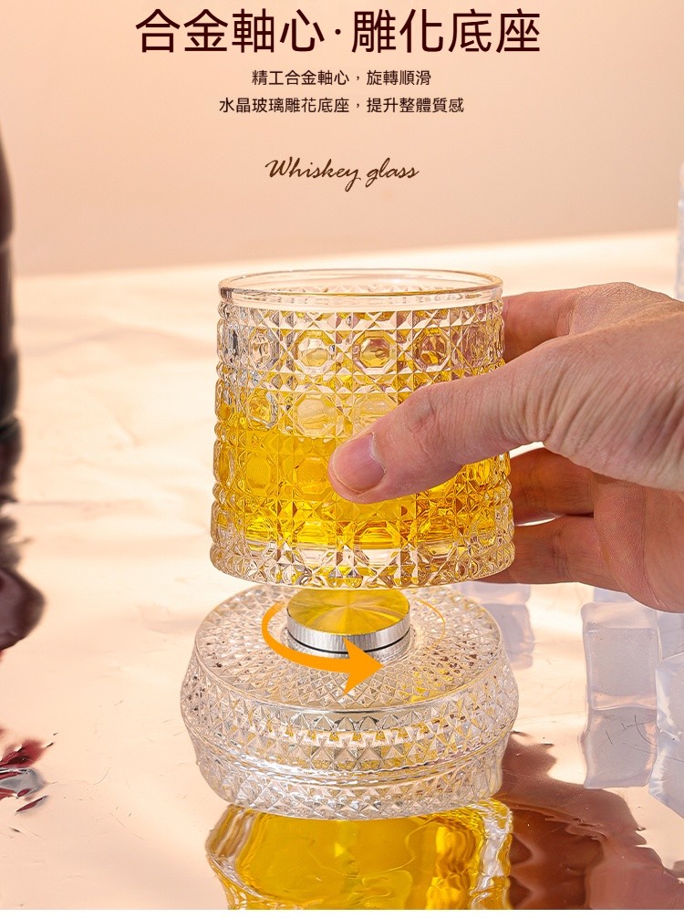 【旋轉立體浮雕杯】指尖流轉的光影藝術 ✅精密不鏽鋼軸承✅60°平穩旋轉✅水晶玻璃,光影在指尖流轉閃耀✨