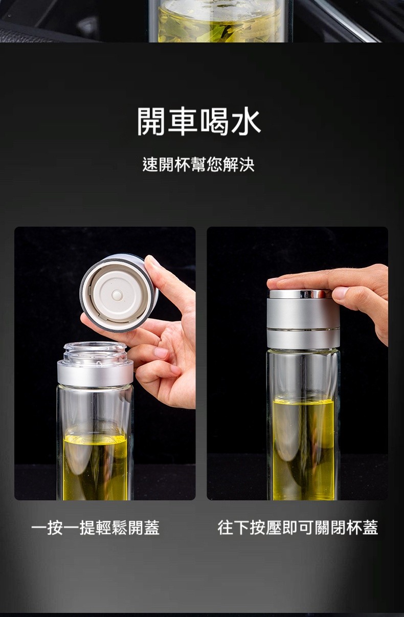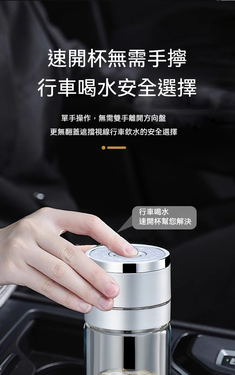 【雙層玻璃速開保溫杯】將「單手一秒開蓋」與「雙層防漏」完美結合!✨高硼硅玻璃、磁控開蓋、茶水分離設計,讓行車飲水與辦公泡茶皆從容不迫✨